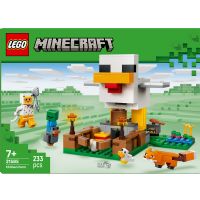 Hønsehuset til rolleleg er formet som en høne med bevægelige vinger og en indhegning foran med en låge, der kan åbnes. Kæmpehønen lægger æg bagtil og drysser frø fra munden til en beholder, som vipper fremad, når kyllingerne har brug for foder. Sjovt tilbehør omfatter fakler, hø, en grill, 2 æg, 2 jordstykker med frø, et kyllingelår, en fjer og en økse. Sættet er en god gaveidé til Minecraft-spillere, LEGO byggere og fans af gaming-inspirerede indretningssæt og kan bruges sammen med LEGO Builder appen, hvor børn kan zoome, dreje i 3D og følge deres fremskridt med letforståelig digital vejledning. Sættet indeholder 233 elementer.
