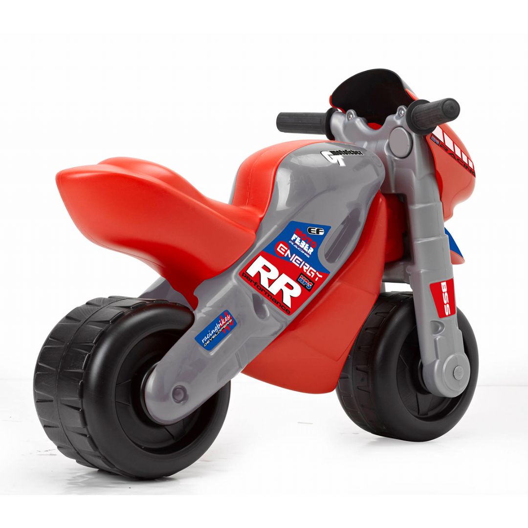 Motorcyklen drives ved, at barnet selv skubber sig frem med fødderne, hvilket er en fantastisk måde at udvikle både balance, koordination og motoriske færdigheder. De brede hjul giver ekstra stabilitet, så barnet kan lege sikkert både inde og ude.