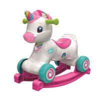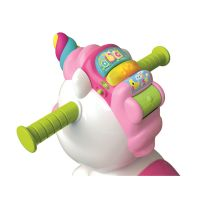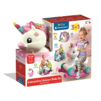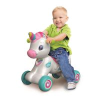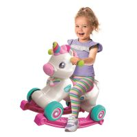 En fabelagtig vuggende enhjørning, som også er et legetøj, hvor børn kan sprede deres vinger og flyve! Udstyret med en sensor, genkender enhjørningen bevægelse og engagerer barnet med realistiske lyde, søde ord og sjove sange. Hvis barnet stryger enhjørningens næseparti, lyser stjernen op, og enhjørningen interagerer med barnet for at få ham eller hende til at tage sig af enhjørningen. Tasterne på manken lærer børn bogstaver såvel som dyrenavne og de lyde, de laver, mens den giver dem mulighed for at udforske simple tal. Spækket med sange og sjove børnerim. Det stimulerer motoriske og sproglige færdigheder samt følelsesmæssig udvikling.