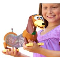 Hop ind i sjov og ballade med Disney og Pixars Toy Story sammen med Slinky Dog! Inspireret af det klassiske Slinky-legetøj og den elskelige karakter fra Toy Story har Slinky Dog en spiralkrop, bløde ører og en grøn halsbånd. Træk ham i den medfølgende snor, og se ham strække sig og sno sig, mens han følger med. Dette klassiske træk-legetøj er syv tommer højt og kan strækkes fra fem til 14 tommer i længden! For børn fra 18 måneder og opefter.